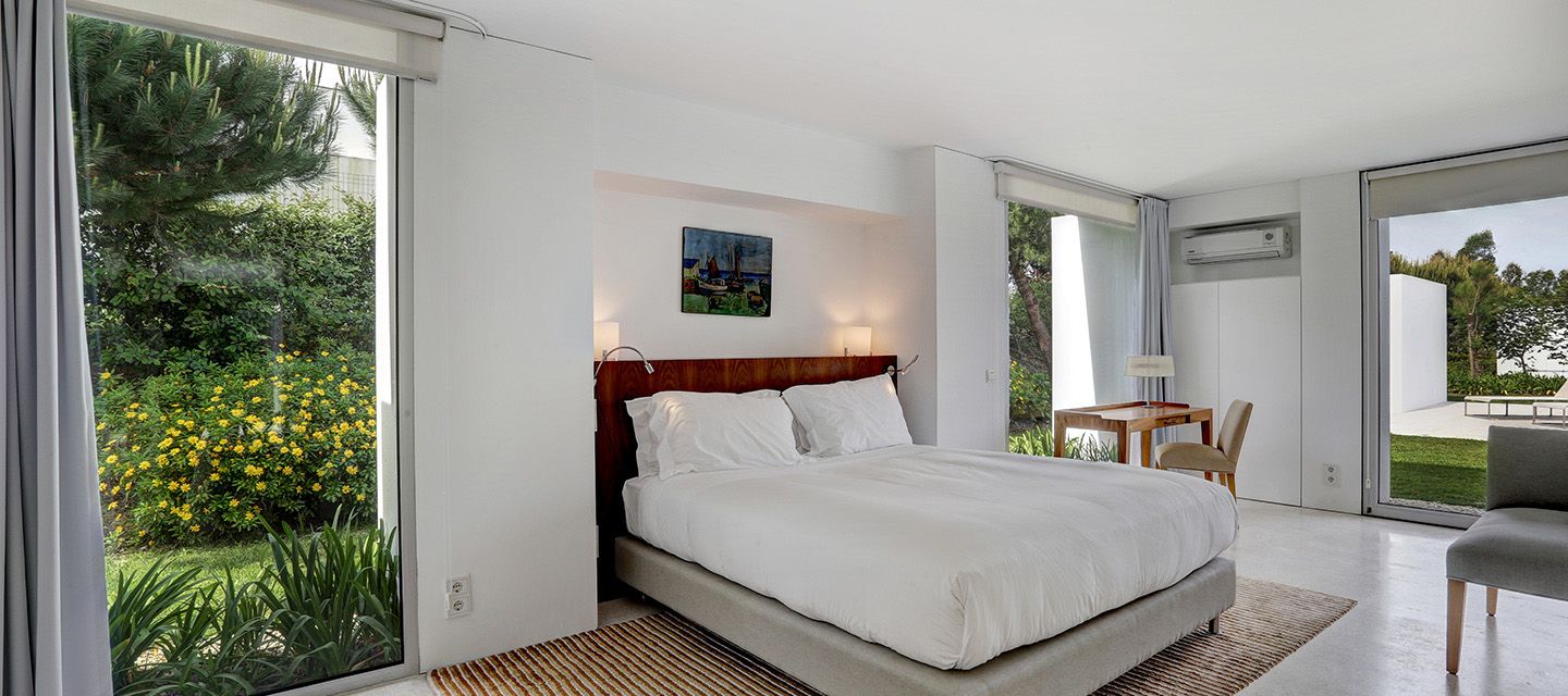 Projectada pelo aclamado Arquiteto Manuel Aires Mateus, esta residência inclui dois quartos en-suite, uma ampla sala de estar de 75m² com acesso direto a um exuberante jardim privado de 143m², cozinha totalmente equipada, três casas de banho e uma área de lavandaria. O layout é versátil: pode facilmente transformar-se numa casa de 3 quartos, fechando uma zona da sala com acesso a uma casa de banho adicional.