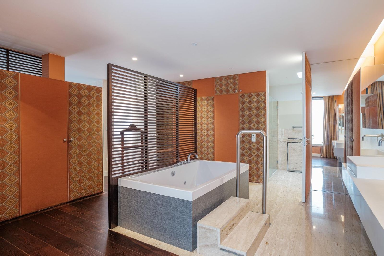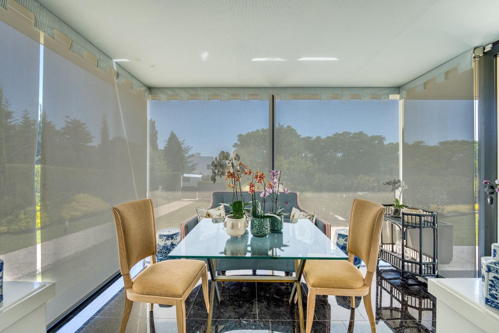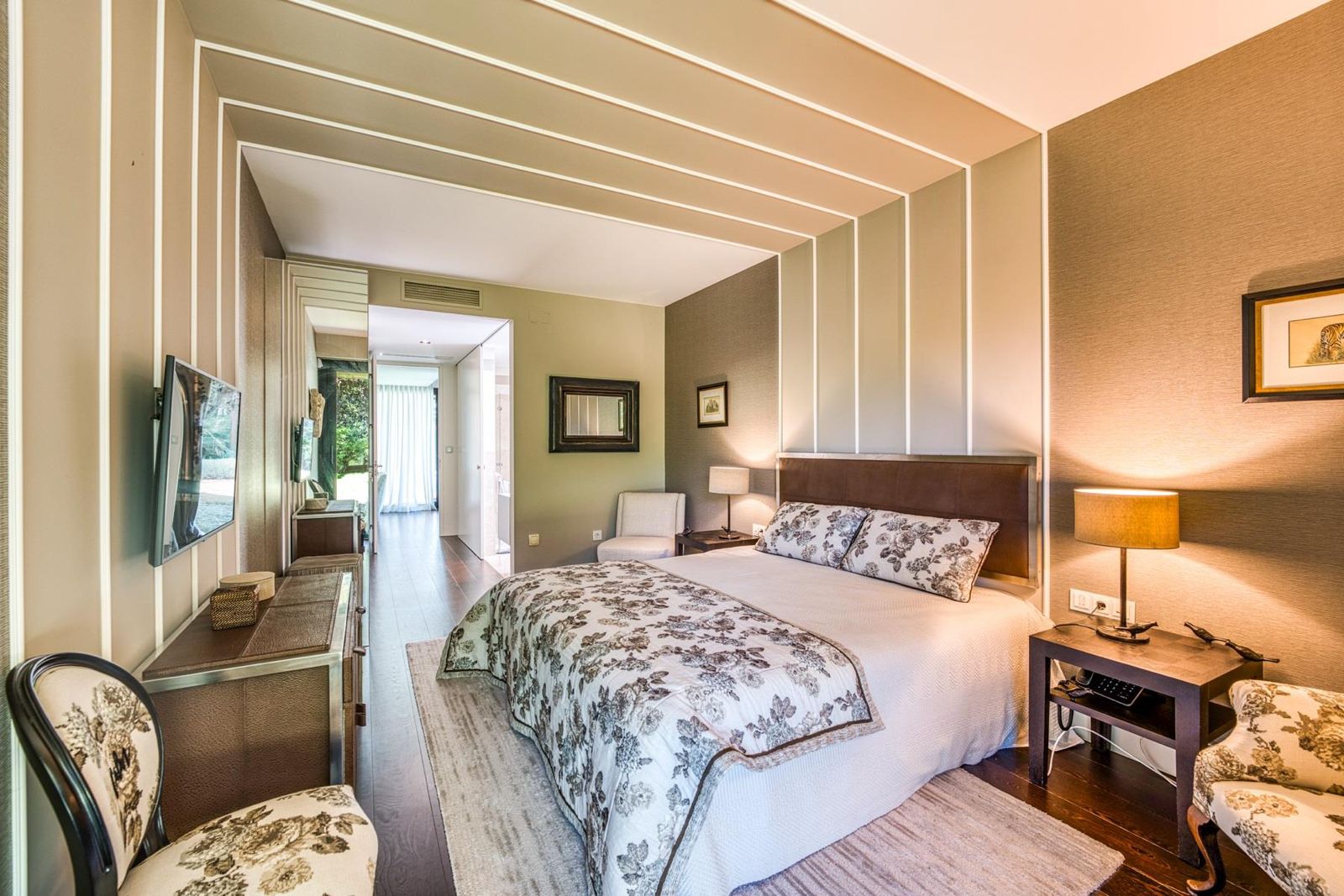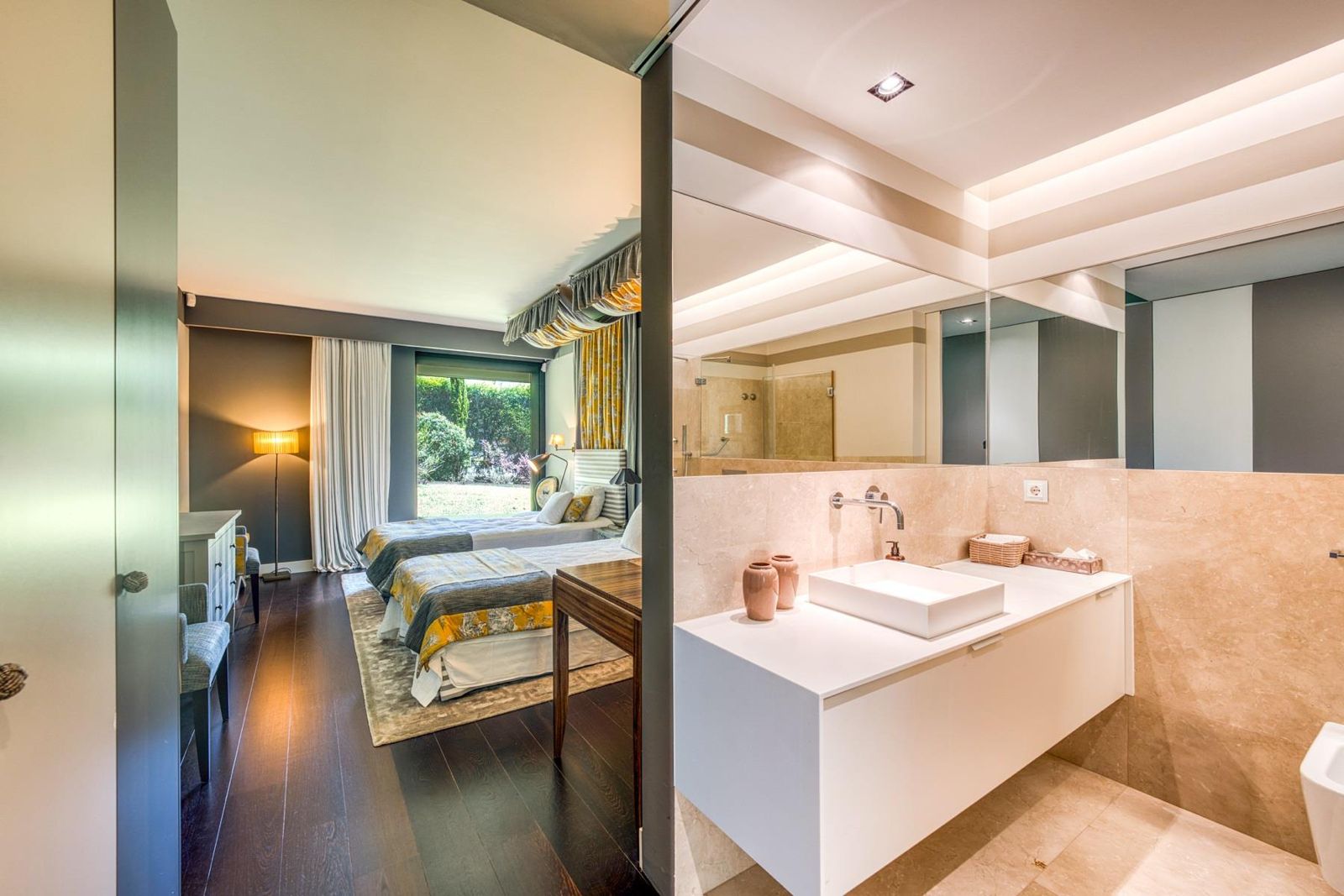 Esta villa de estilo contemporâneo, concebida para conforto e elegância, oferece cinco quartos com casa de banho privativa e aquecimento por piso radiante em todos os espaços.