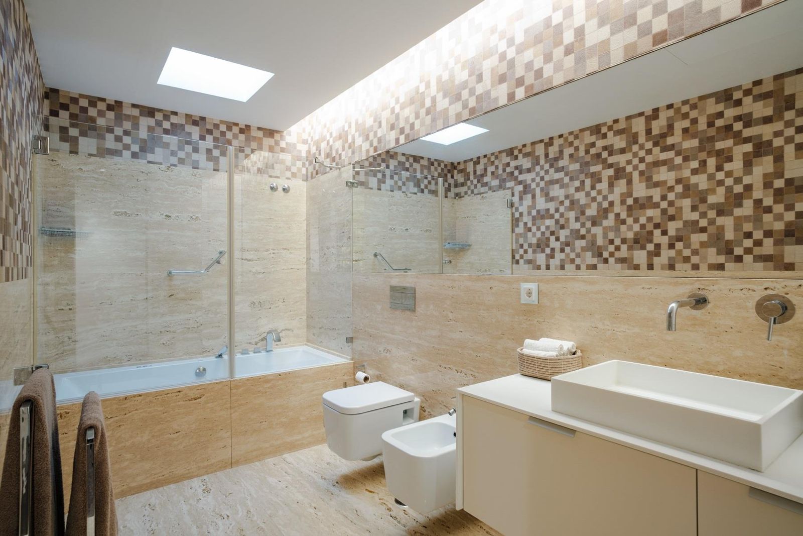 O projeto privilegia linhas finas e claridade, com múltiplas claraboias a inundar os ambientes de luz natural.