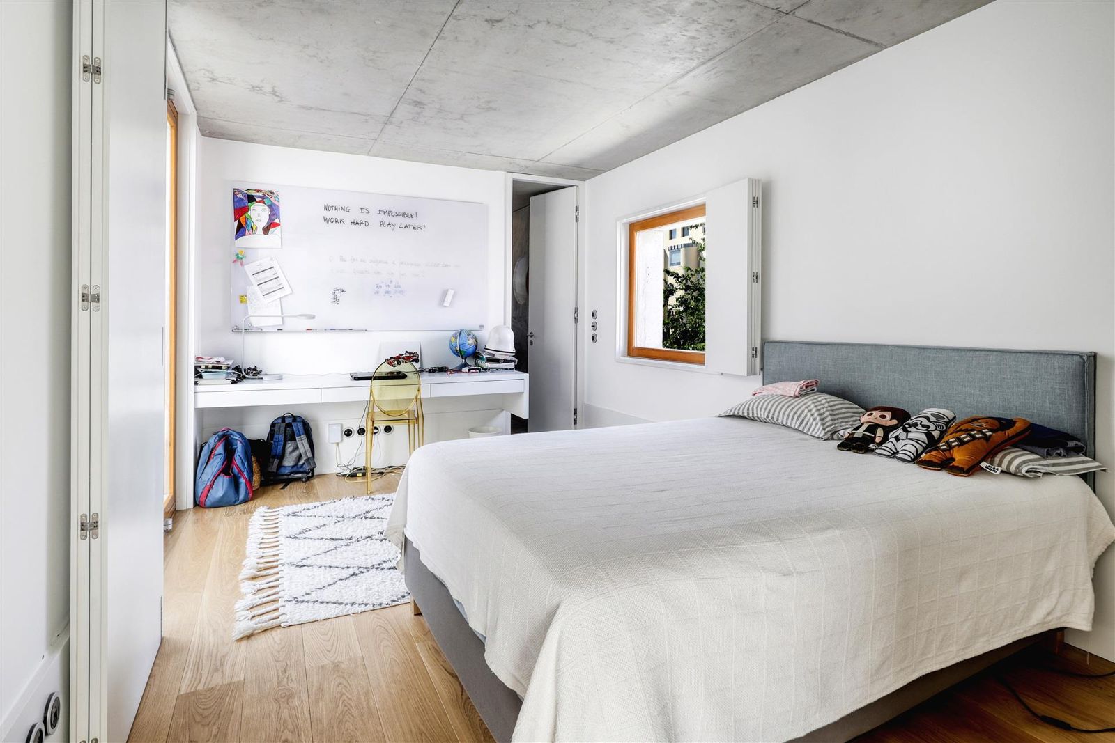 O piso superior é dedicado ao bem-estar privado, com uma suite master exclusiva e closet espaçoso. Quatro quartos adicionais, de proporções generosas, partilham duas casas de banho modernas.