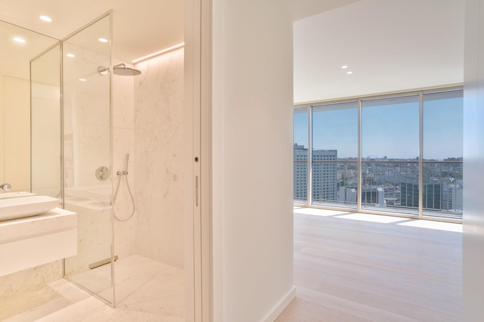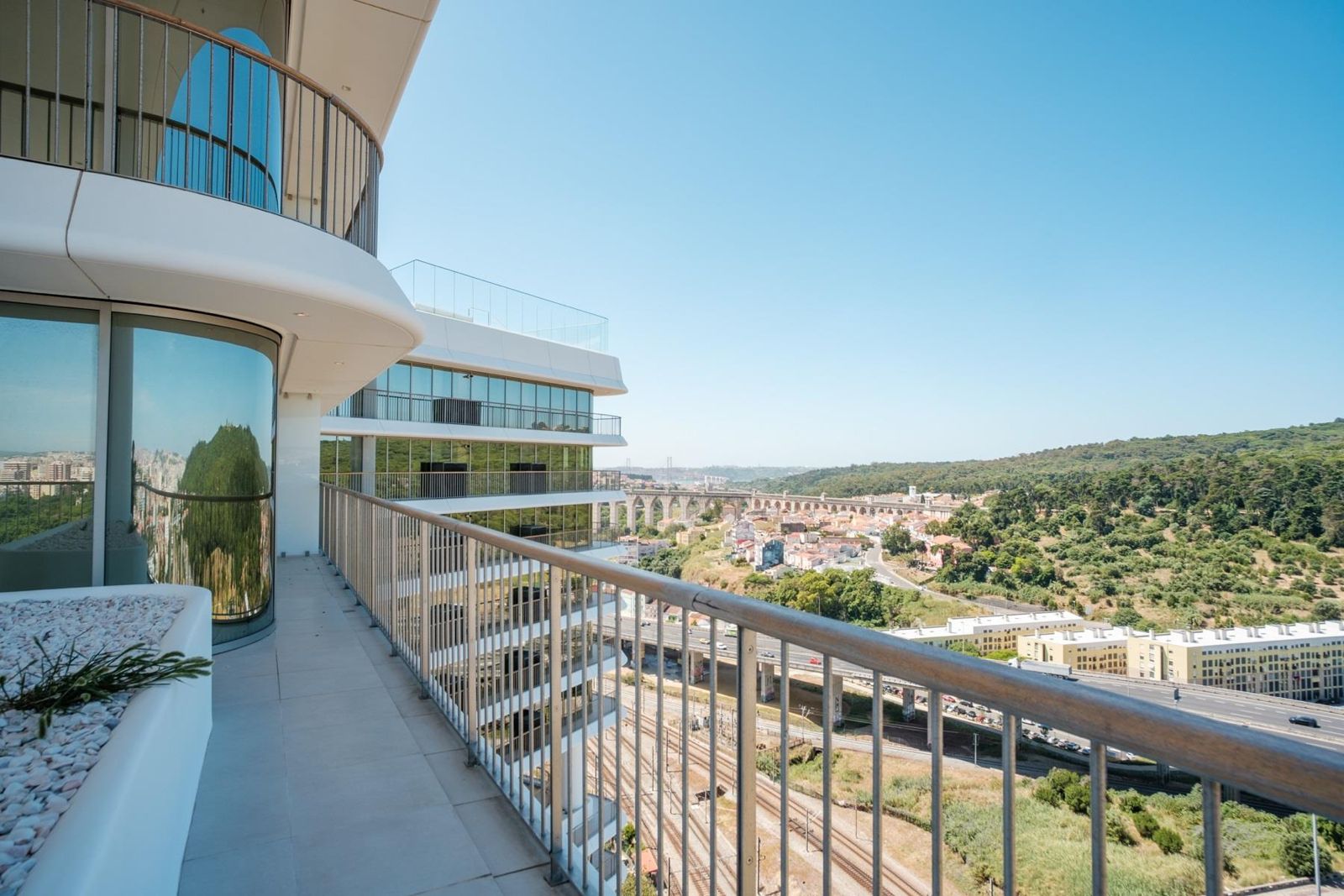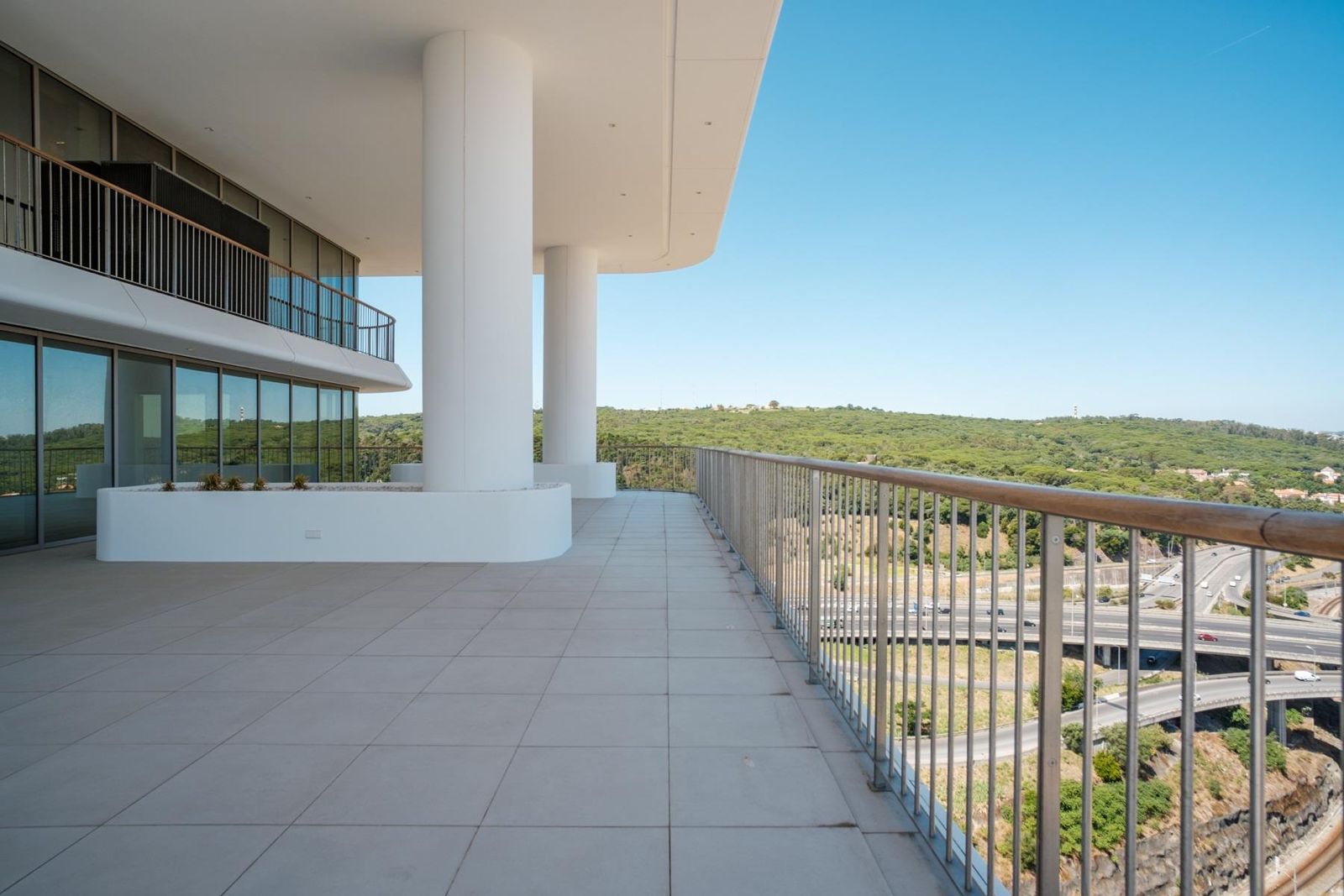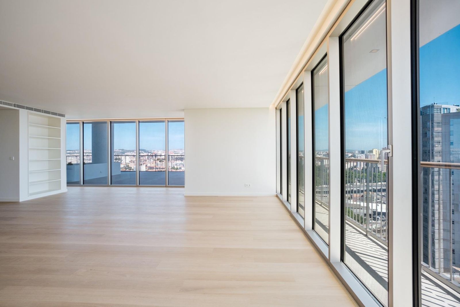 Distribuído pelos 22.º e 23.º andares, este penthouse novo oferece 467 m² de área bruta privativa e 218 m² de espaço exterior, com vista privilegiada sobre o Parque de Monsanto. Inclui garagem para 3 viaturas, um lugar de estacionamento adicional e arrecadação.