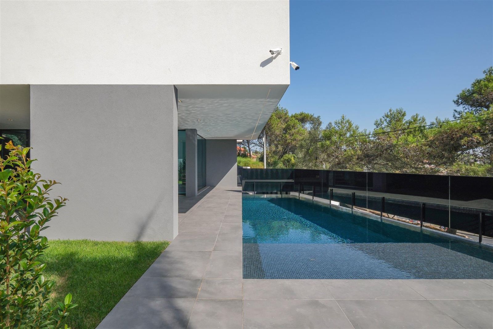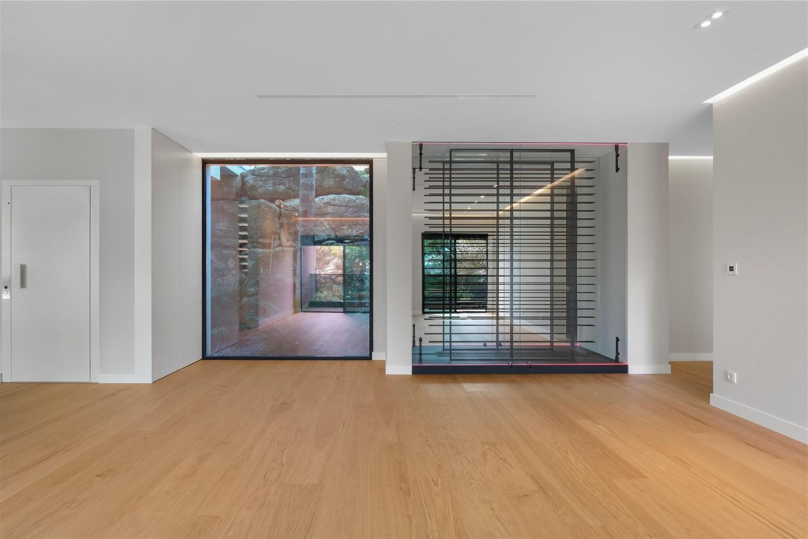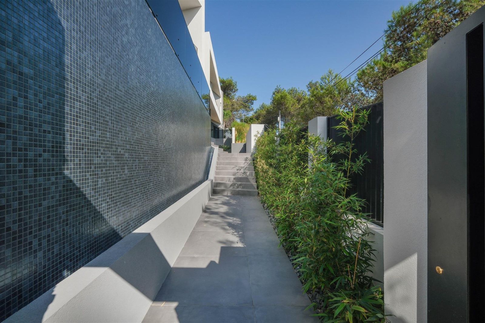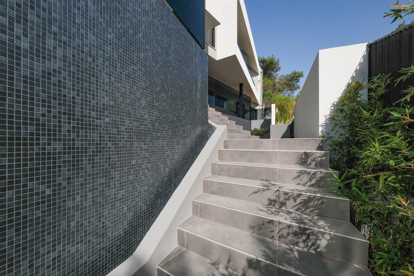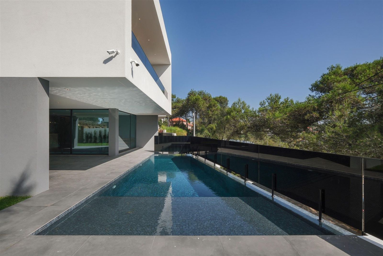 A villa é composta por cinco suites, incluindo uma no rés-do-chão e quatro no piso superior, com uma ampla suite master de 44 m² e varanda privativa. Os espaços interiores são generosos e luminosos, criando um ambiente acolhedor e sofisticado. No cave, encontram-se uma lavandaria, casa de banho, área multiusos, sala técnica e garagem para três viaturas. As áreas exteriores oferecem diversos espaços de lazer, garantindo privacidade e conforto no centro de Cascais.