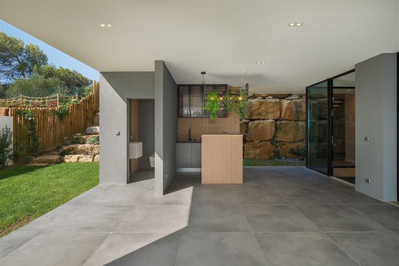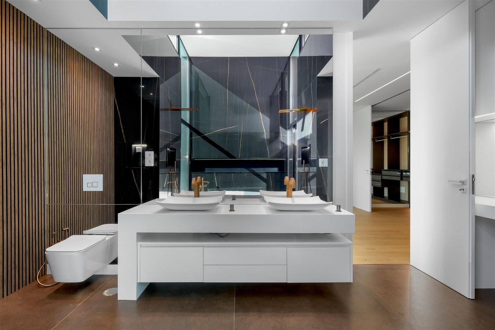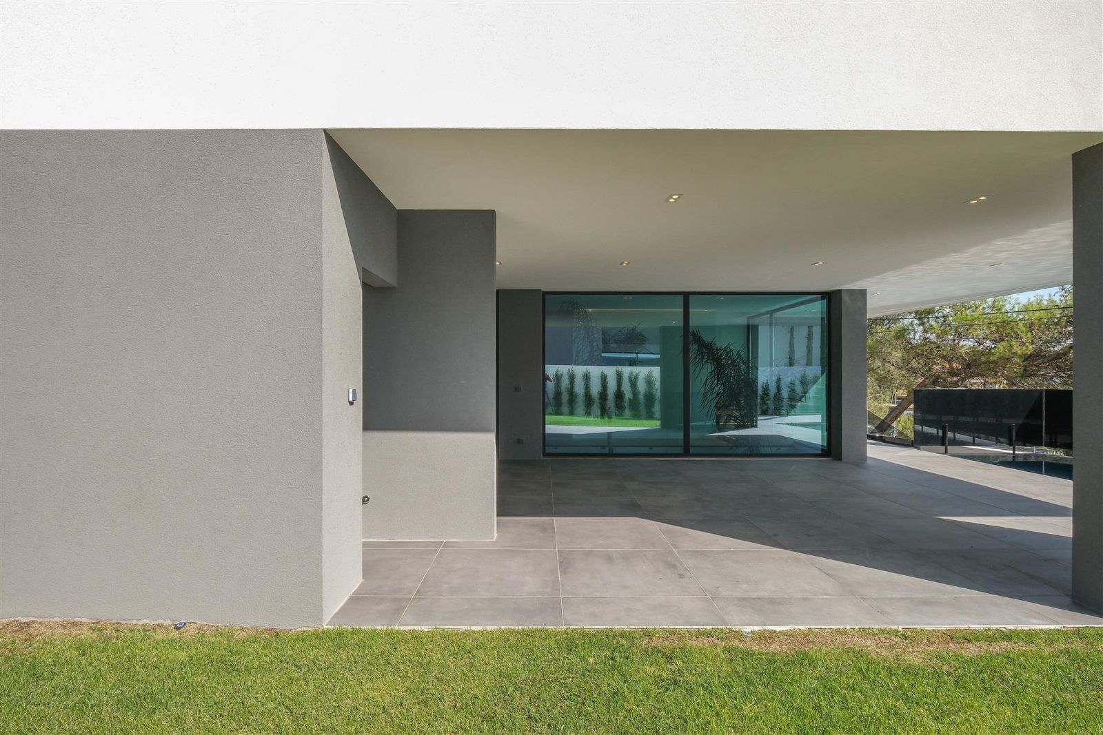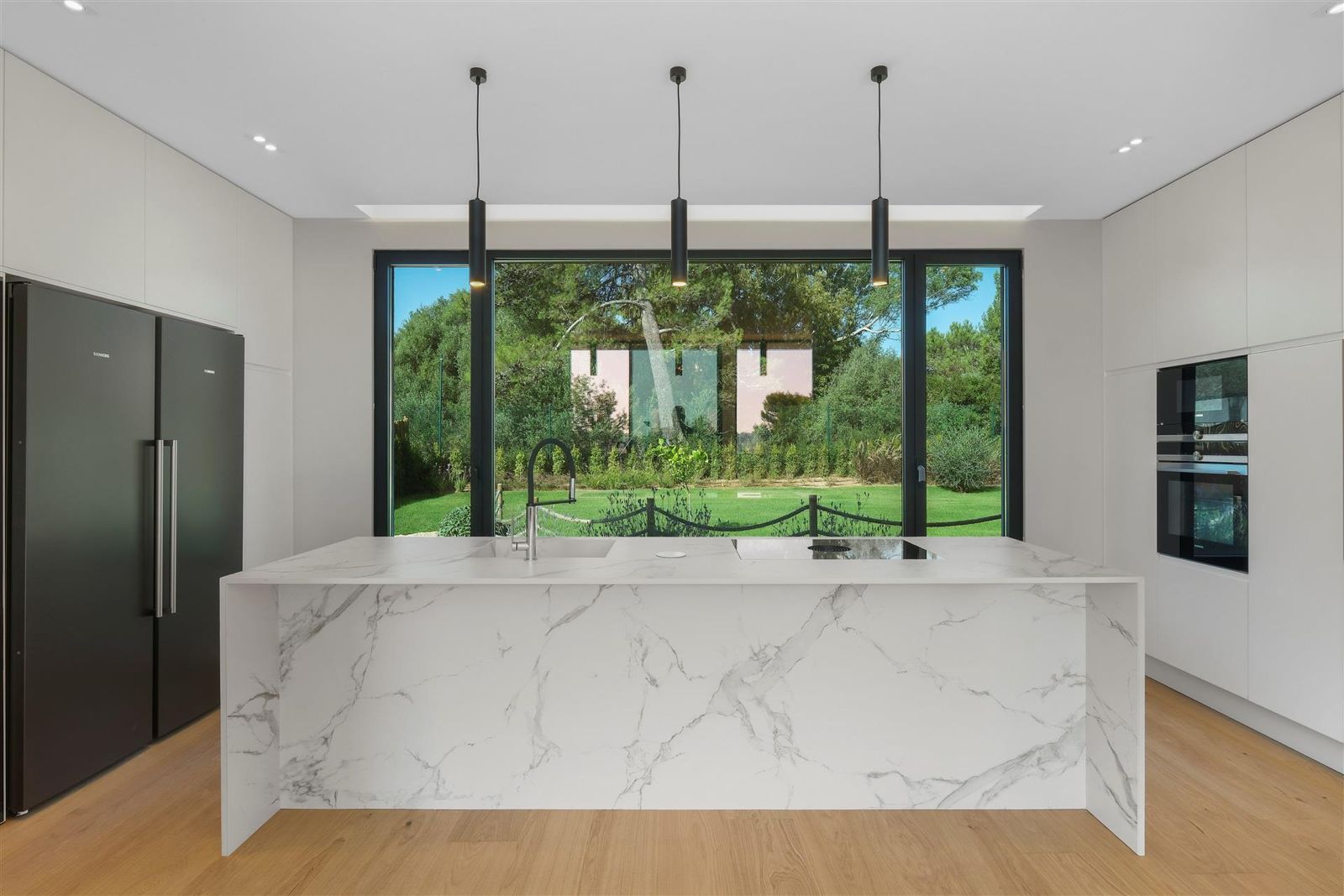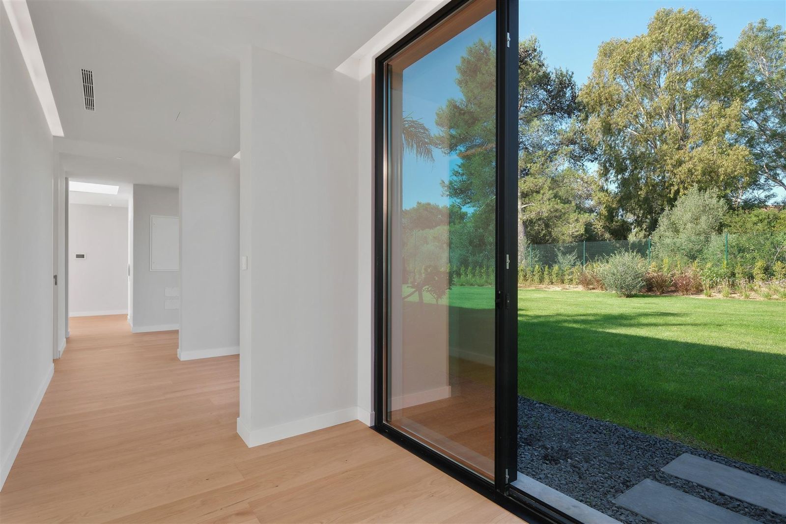 A villa é composta por cinco suites, incluindo uma no rés-do-chão e quatro no piso superior, com uma ampla suite master de 44 m² e varanda privativa. Os espaços interiores são generosos e luminosos, criando um ambiente acolhedor e sofisticado. No cave, encontram-se uma lavandaria, casa de banho, área multiusos, sala técnica e garagem para três viaturas. As áreas exteriores oferecem diversos espaços de lazer, garantindo privacidade e conforto no centro de Cascais.