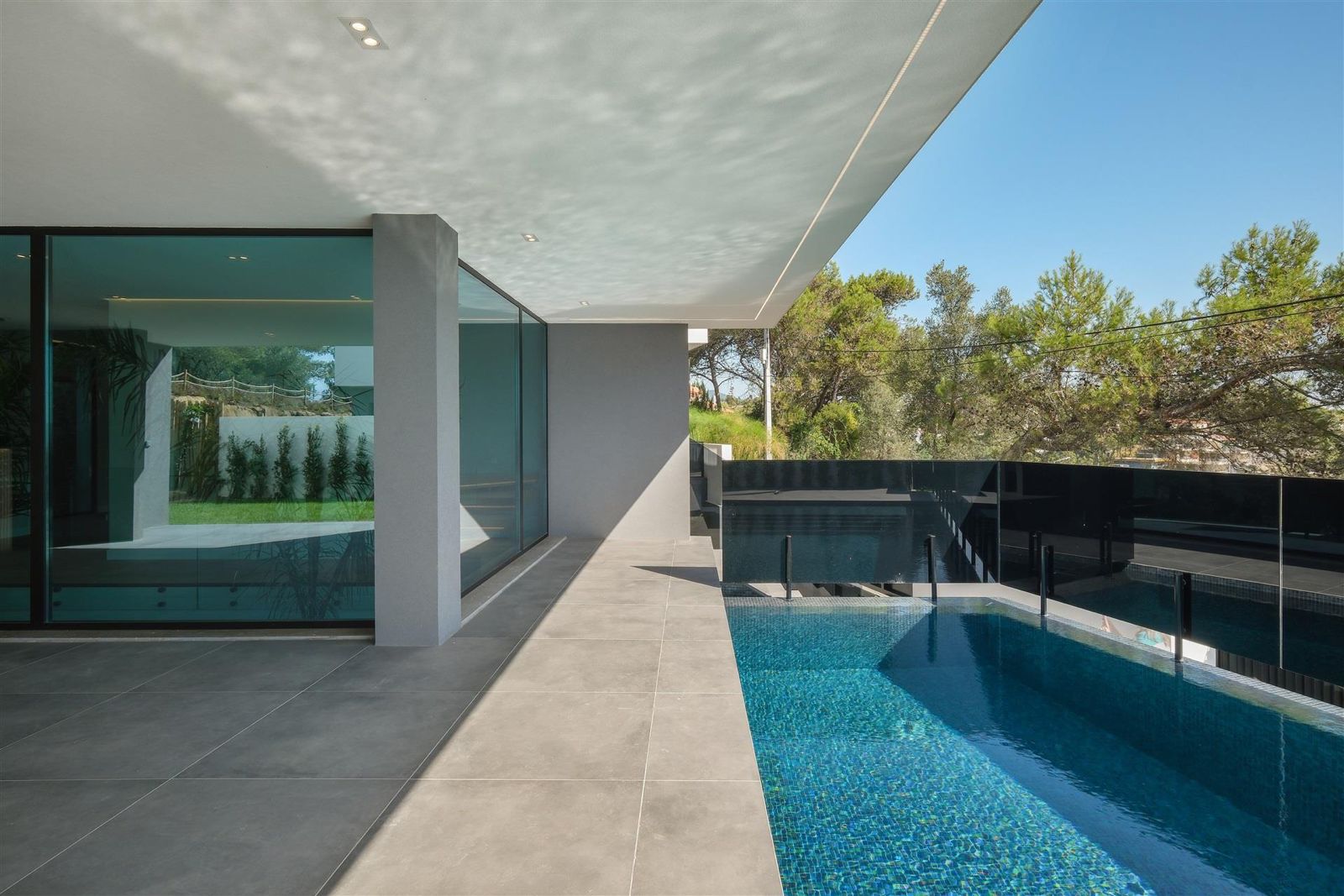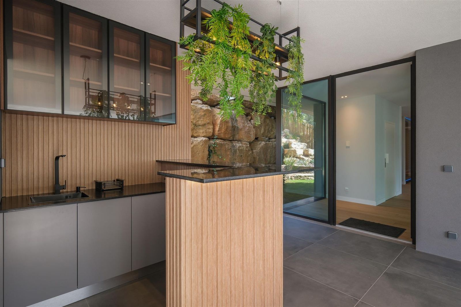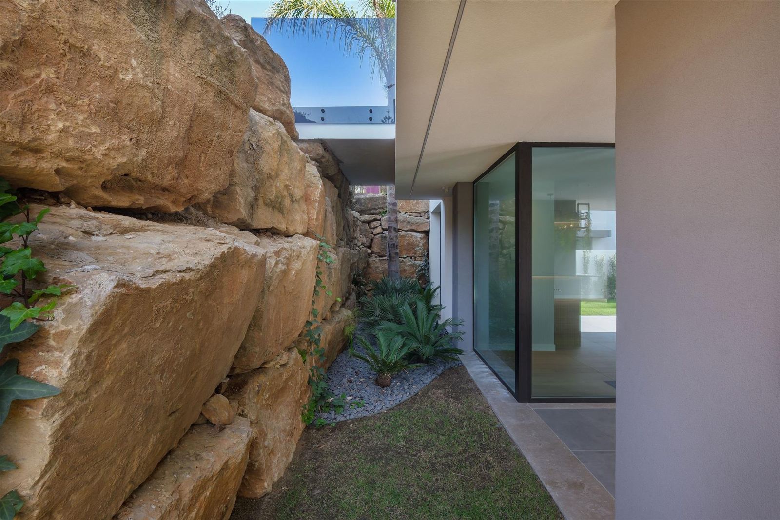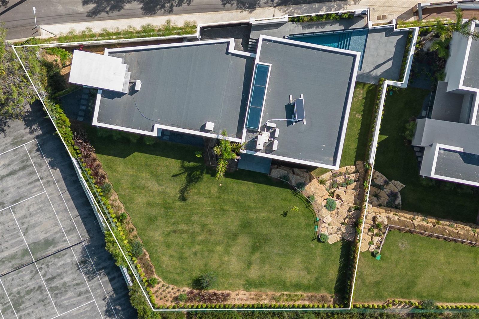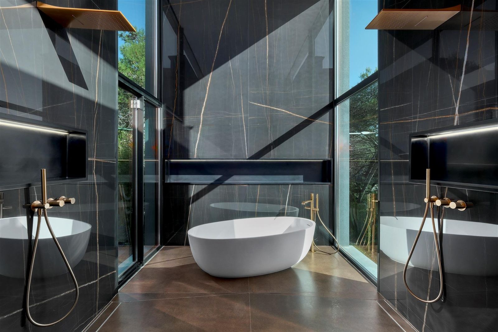 A villa é composta por cinco suites, incluindo uma no rés-do-chão e quatro no piso superior, com uma ampla suite master de 44 m² e varanda privativa. Os espaços interiores são generosos e luminosos, criando um ambiente acolhedor e sofisticado. No cave, encontram-se uma lavandaria, casa de banho, área multiusos, sala técnica e garagem para três viaturas. As áreas exteriores oferecem diversos espaços de lazer, garantindo privacidade e conforto no centro de Cascais.