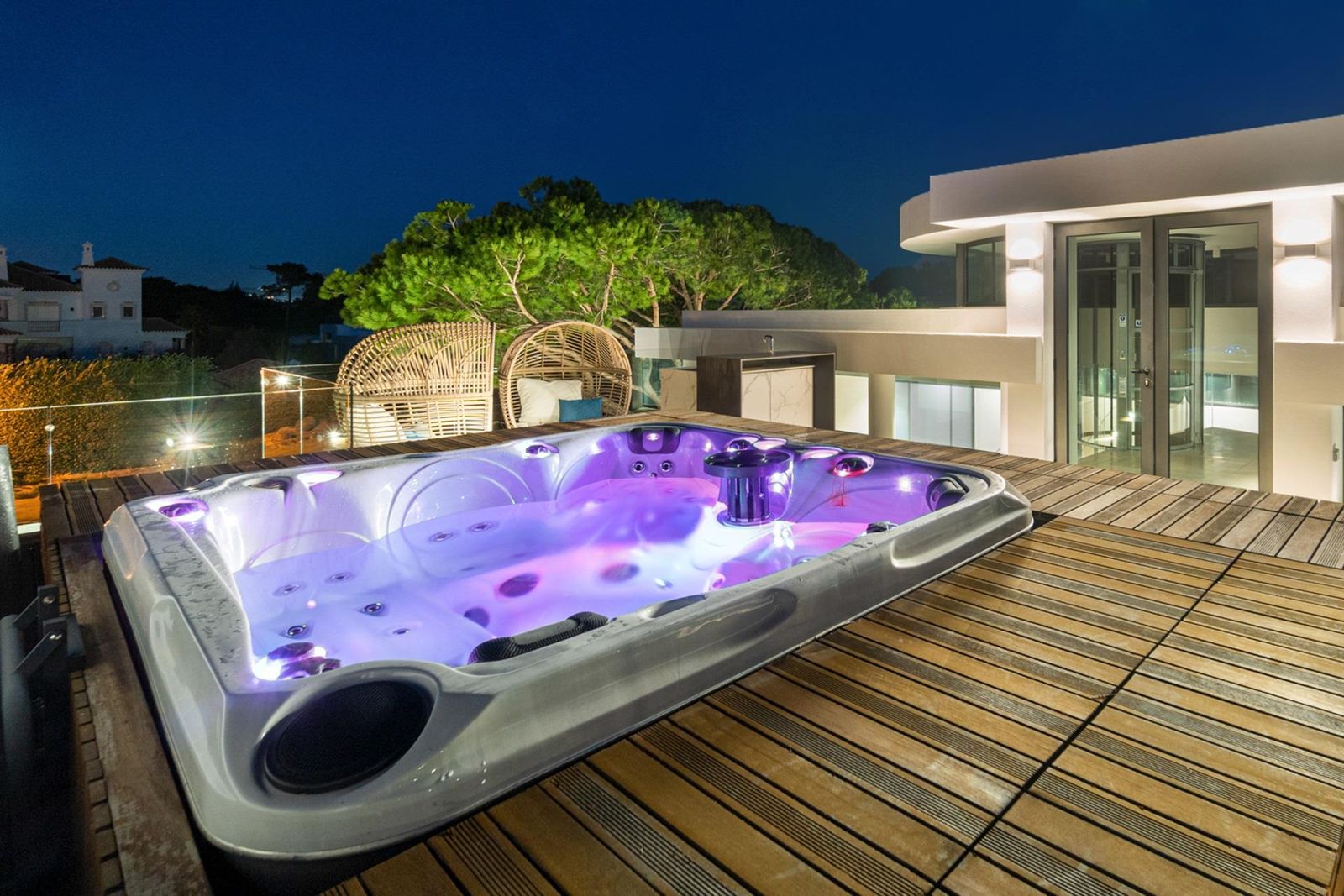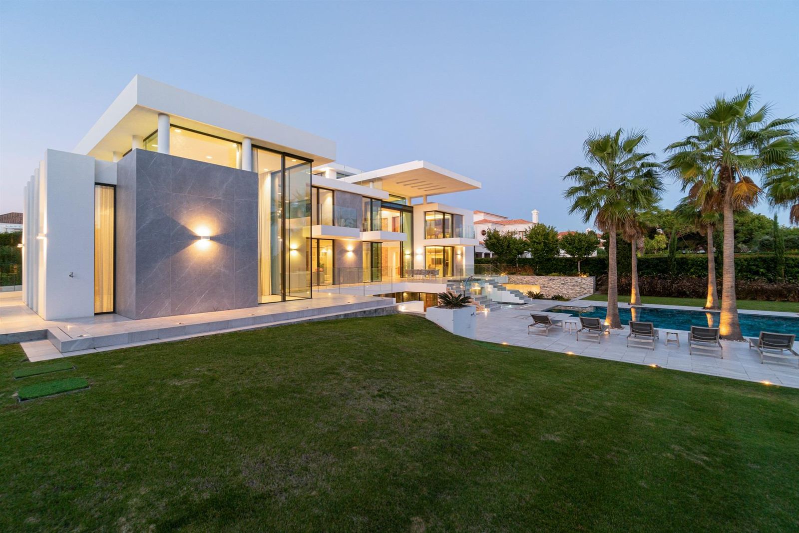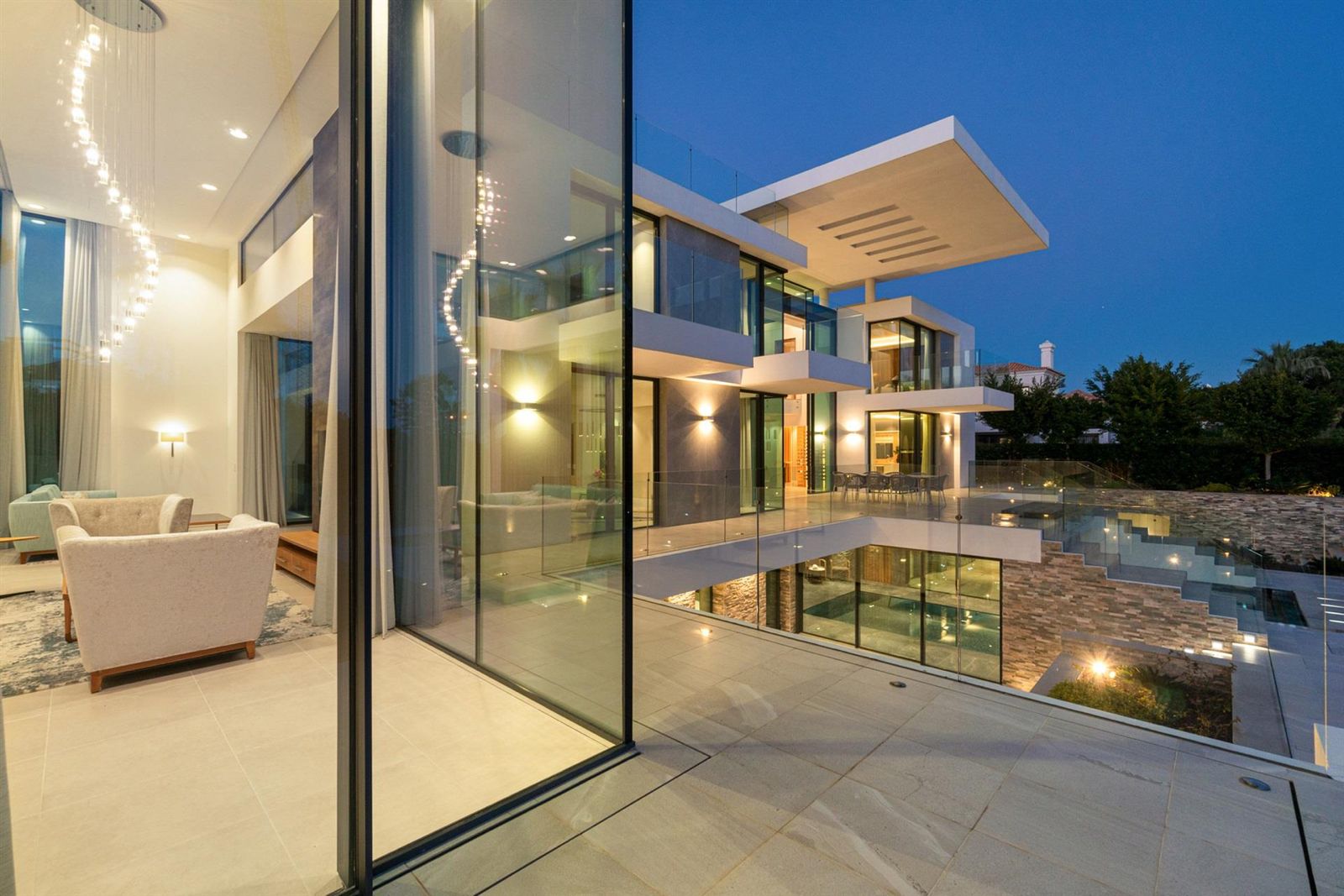 No rés-do-chão, descubra opções de entretenimento como uma piscina interior e spa, cinema em casa, ginásio e zona de churrasco. O terraço na cobertura apresenta um jacuzzi privado, área de lounge e um bar para relaxamento. Os espaços exteriores foram concebidos para uma vida ao ar livre, com uma piscina infinita de tirar o fôlego, um grande spa exterior e vários balcões virados a sul, ideais para banhos de sol e refeições.