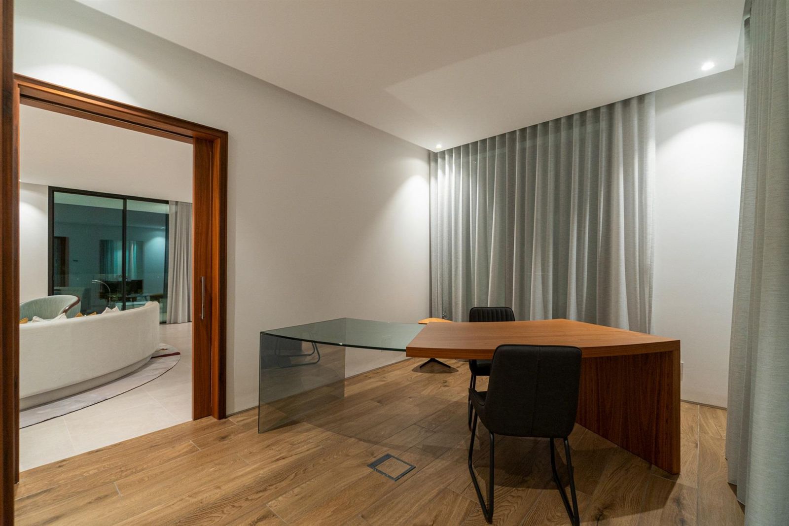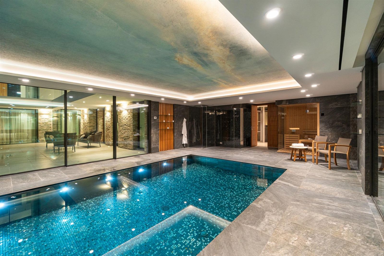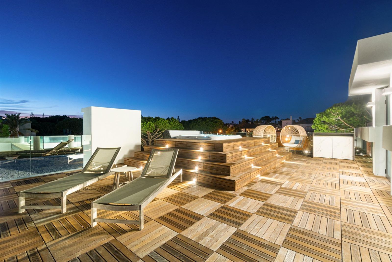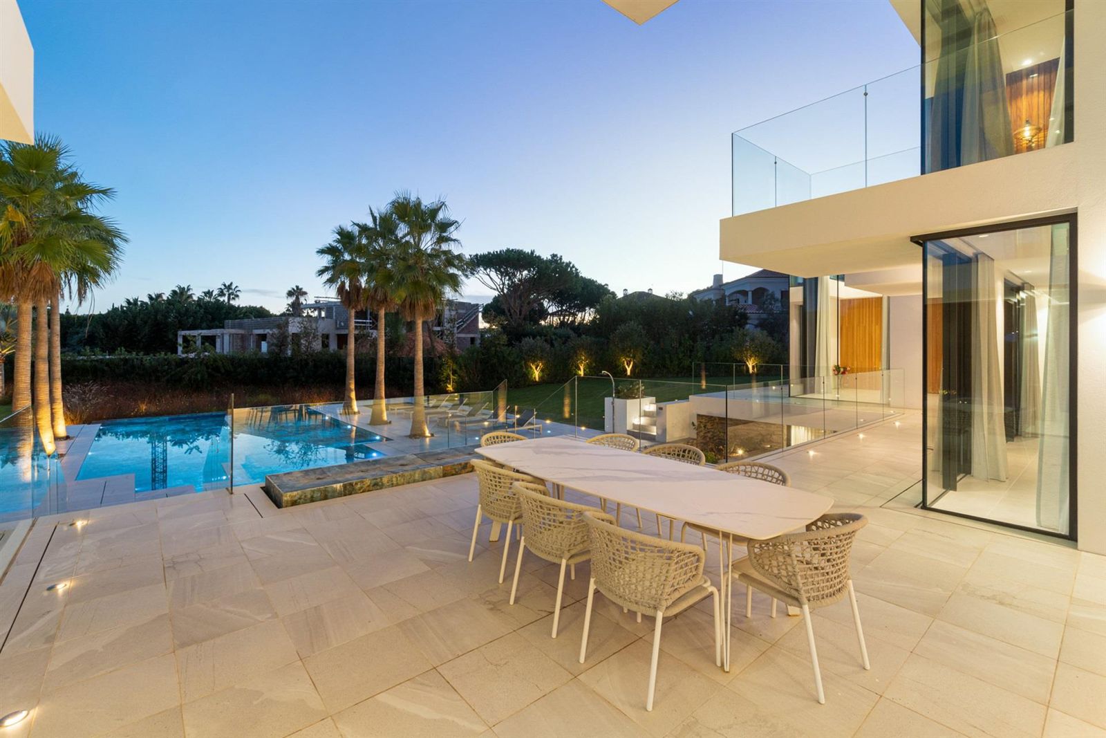 No rés-do-chão, descubra opções de entretenimento como uma piscina interior e spa, cinema em casa, ginásio e zona de churrasco. O terraço na cobertura apresenta um jacuzzi privado, área de lounge e um bar para relaxamento. Os espaços exteriores foram concebidos para uma vida ao ar livre, com uma piscina infinita de tirar o fôlego, um grande spa exterior e vários balcões virados a sul, ideais para banhos de sol e refeições.