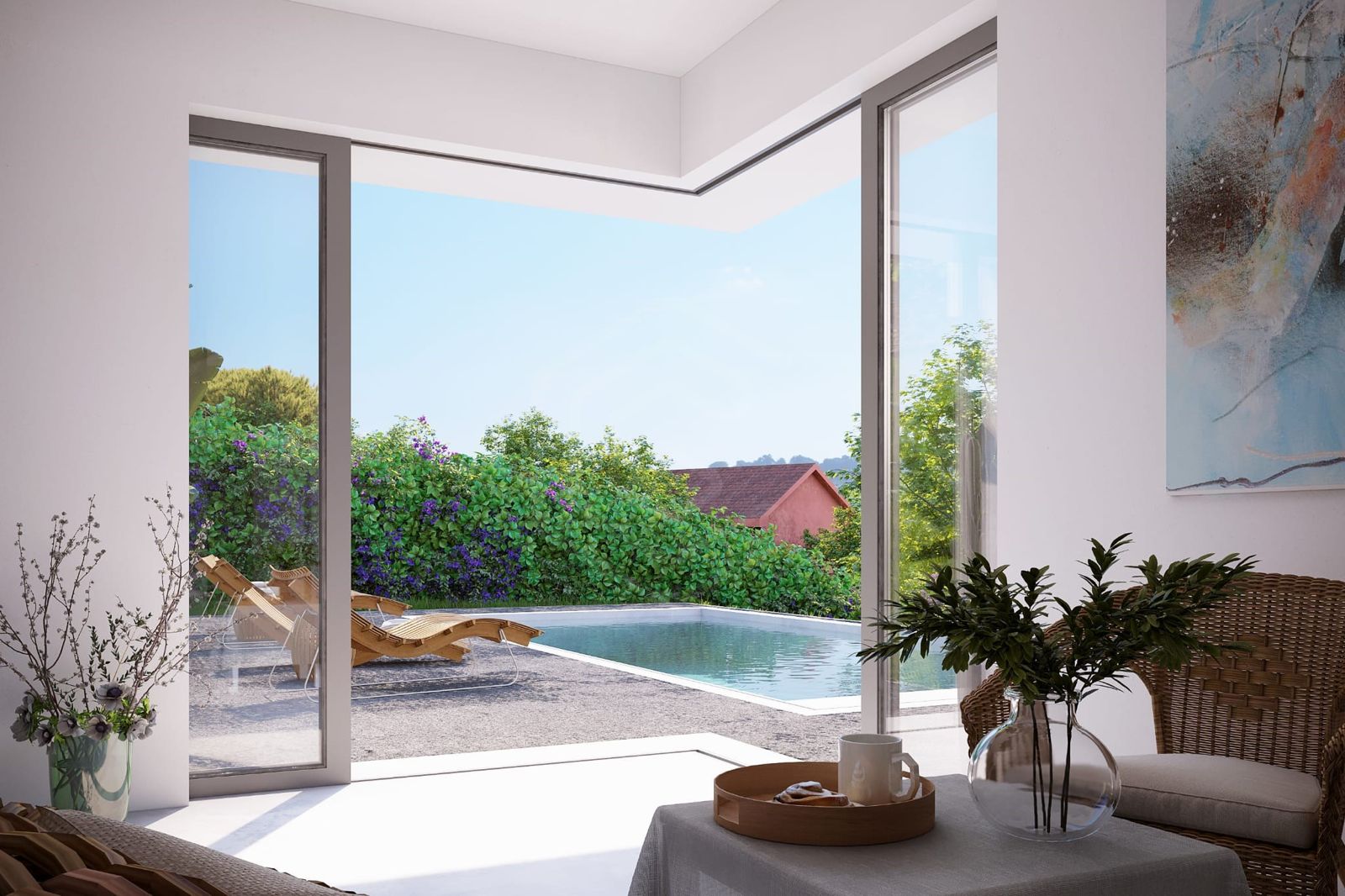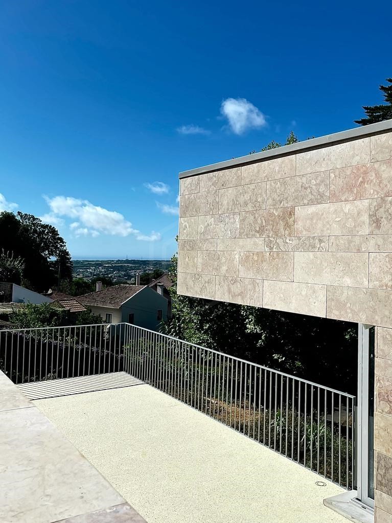 No exterior, a piscina aquecida com orientação sudoeste convida a momentos de lazer, complementada por espaços versáteis que podem ser adaptados a cinema doméstico, ginásio ou adega. Os terraços superiores oferecem perspectivas únicas: durante o verão, sobre a vegetação luxuriante; no inverno, até ao horizonte de Ericeira e ao Convento de Mafra, sempre com o emblemático Castelo da Pena como pano de fundo.