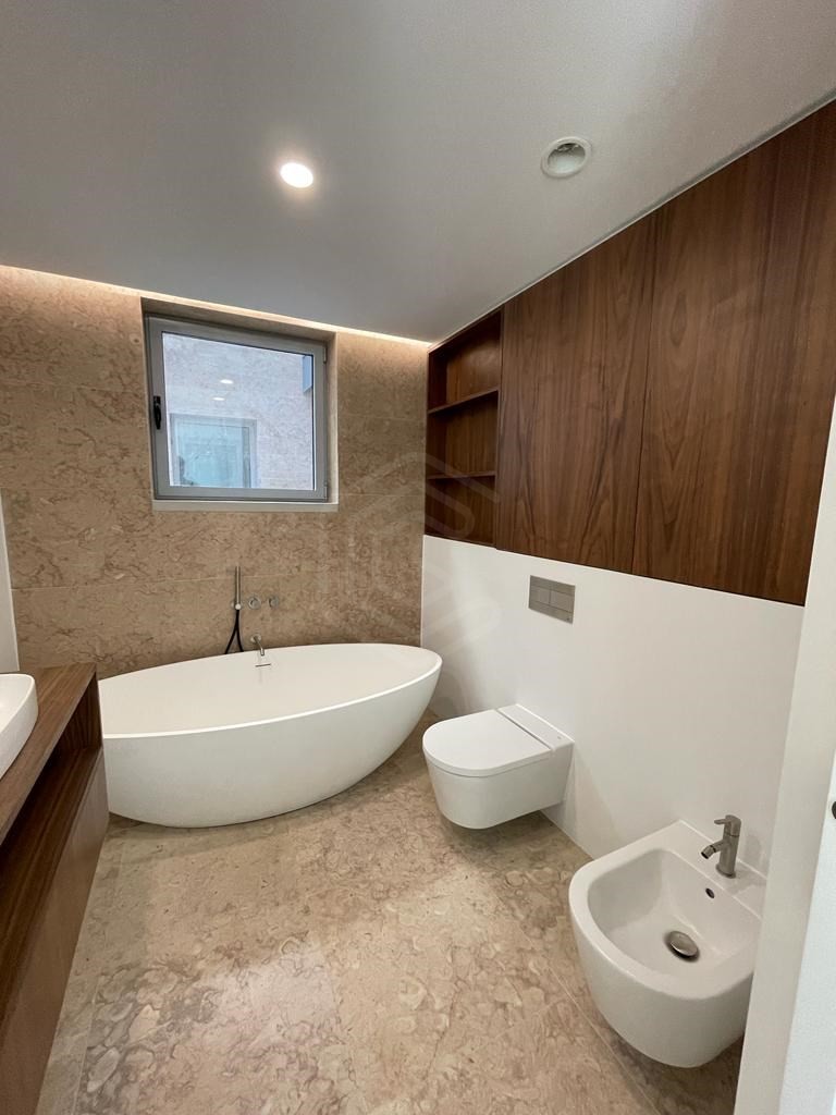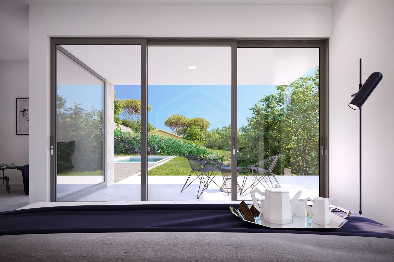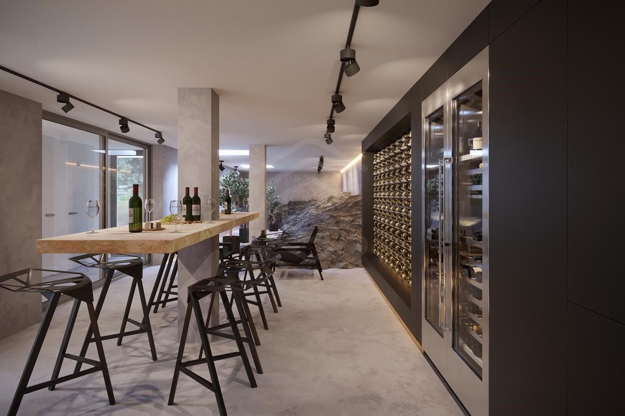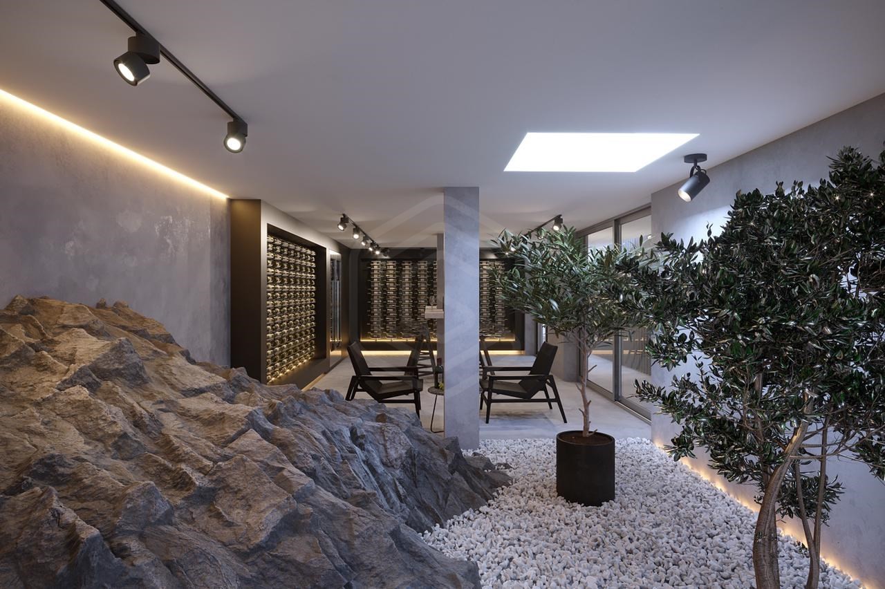 A villa inclui cinco suites principais mais uma suite adicional, totalizando sete casas de banho (cinco privativas e duas sociais). As áreas comuns foram concebidas para oferecer máximo conforto, destacando-se o aquecimento por piso radiante e um sistema de ventilação mecânica controlada (VMC).