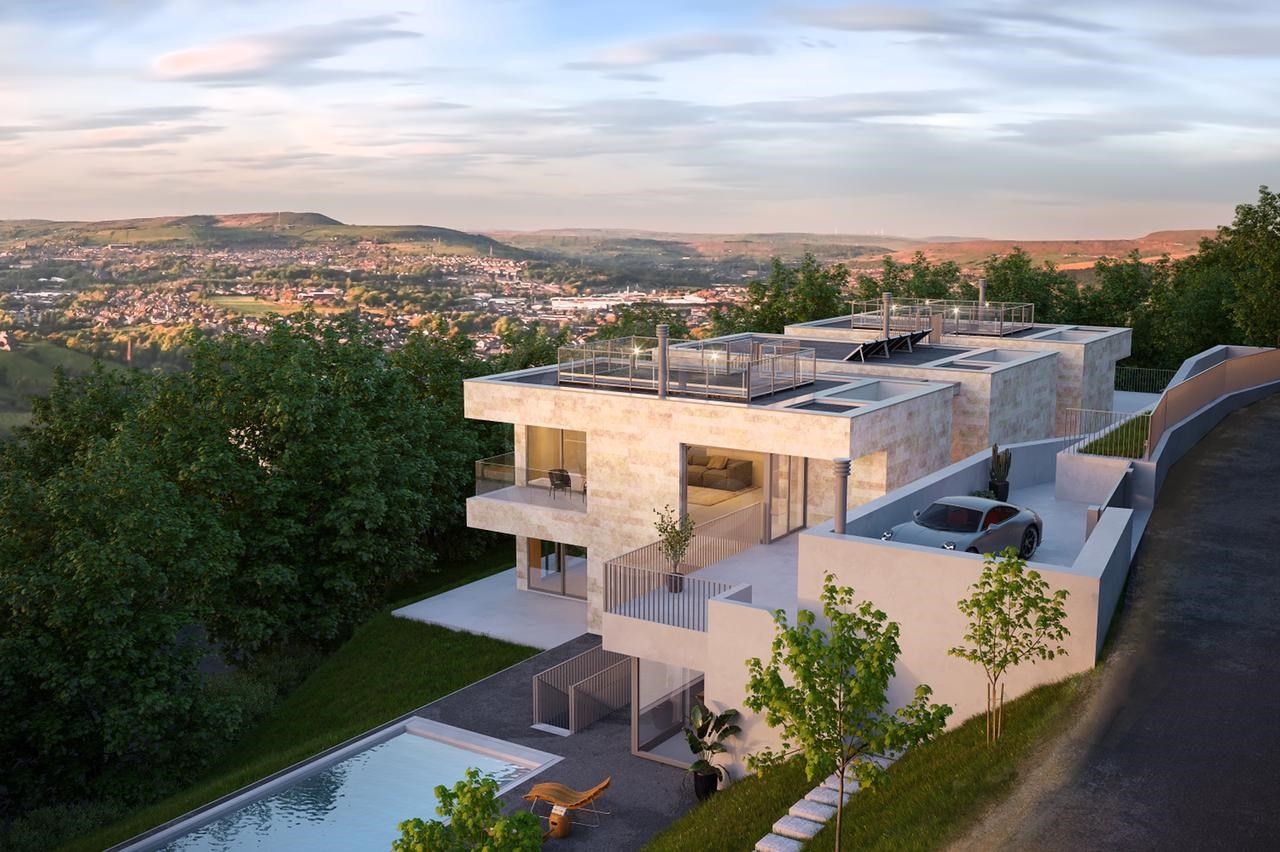 A arquitectura harmoniza materiais nobres com um design contemporâneo, criando um carácter atemporal. Os amplos espaços interiores são iluminados por grandes janelas que enquadram vistas panorâmicas sobre o oceano e o Castelo dos Mouros, enquanto as múltiplas varandas promovem uma ligação perfeita com a paisagem circundante.
